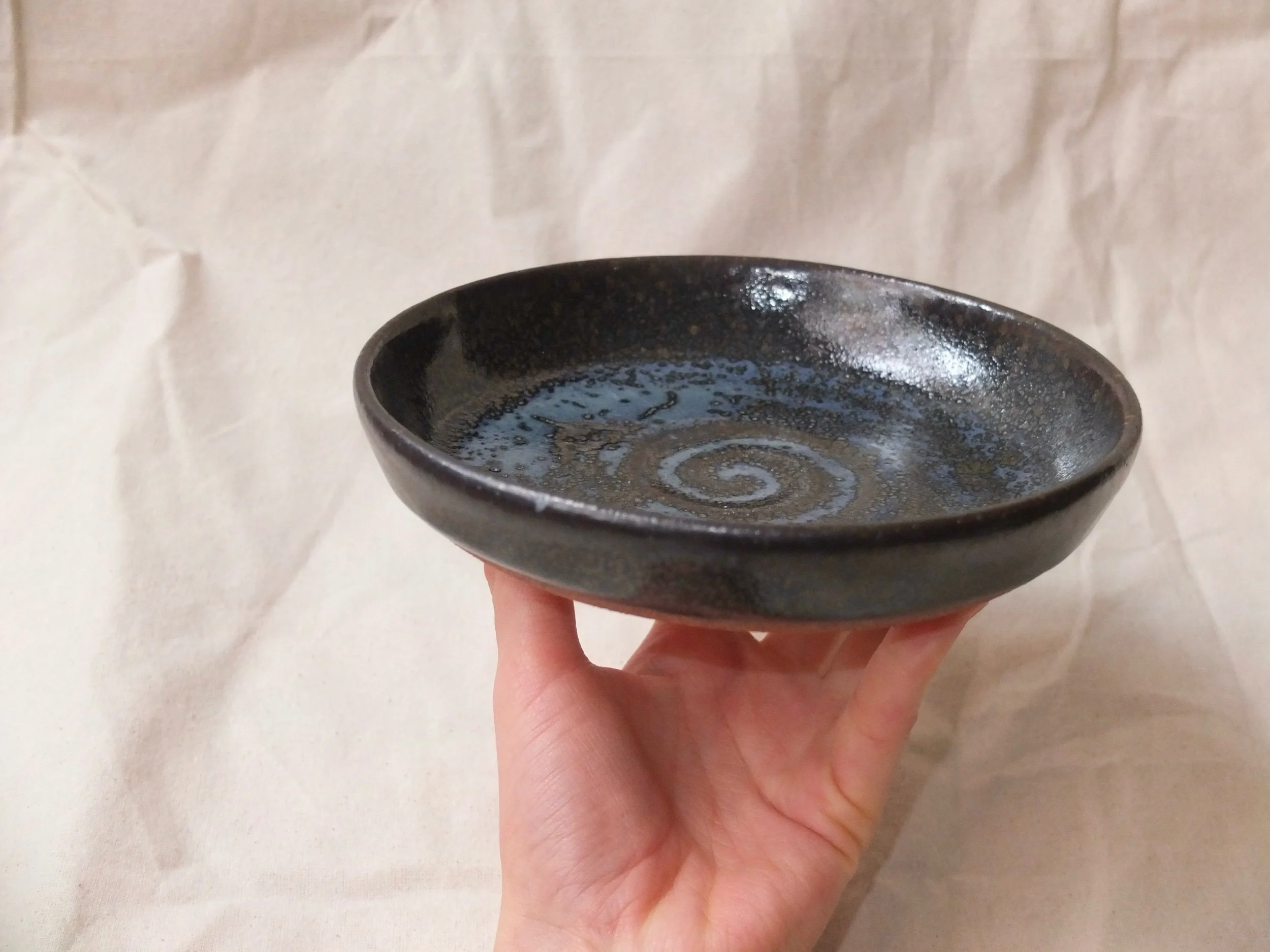 Image 1 of 5 Image 2 of 5 Image 3 of 5 Image 4 of 5 Image 5 of 5 Swirl plate - midnight $37.00 Roughly 7in wide and 1.25in tallFood and liquid safe Add To Cart Added! Roughly 7in wide and 1.25in tallFood and liquid safe