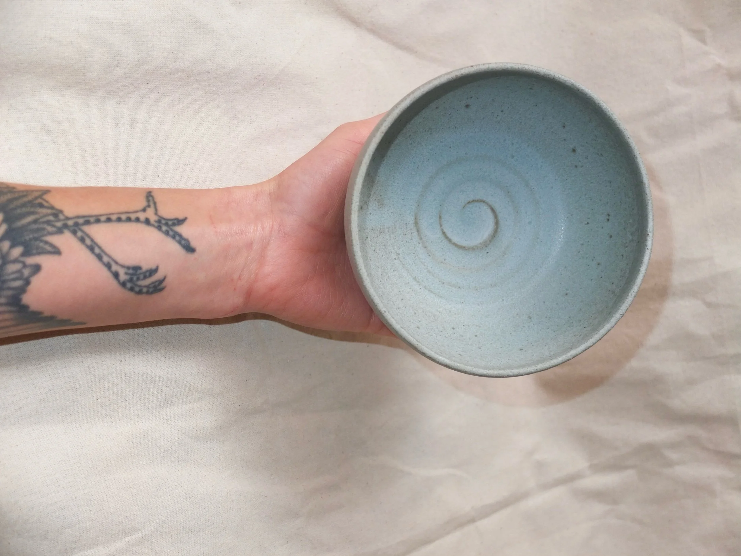 Image 1 of 4 Image 2 of 4 Image 3 of 4 Image 4 of 4 Swirl bowl - sky $35.00 Roughly 5in wide and 2.5in tallFood and liquid safe Add To Cart Added! Roughly 5in wide and 2.5in tallFood and liquid safe